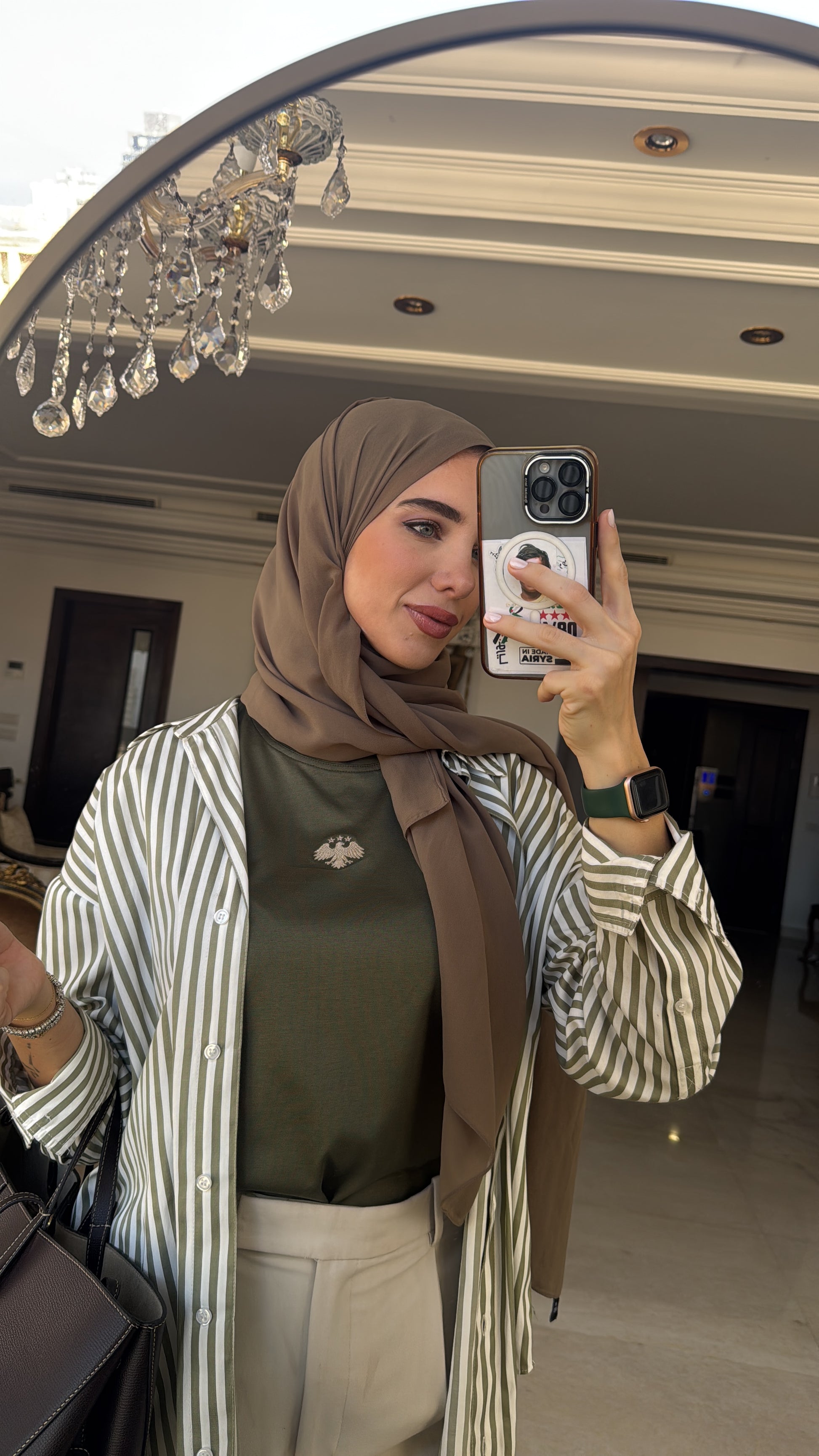 -A symbol of pride and resilience, reimagined for the modern wardrobe. This T-shirt features the new Syrian eagle emblem in a striking bronze gold — the official color of Syrian identity. The emblem is updated with an eagle crowned by three stars, representing the people standing proudly above the state. Crafted for comfort and designed with meaning, it’s a timeless piece that speaks of heritage and strength.
