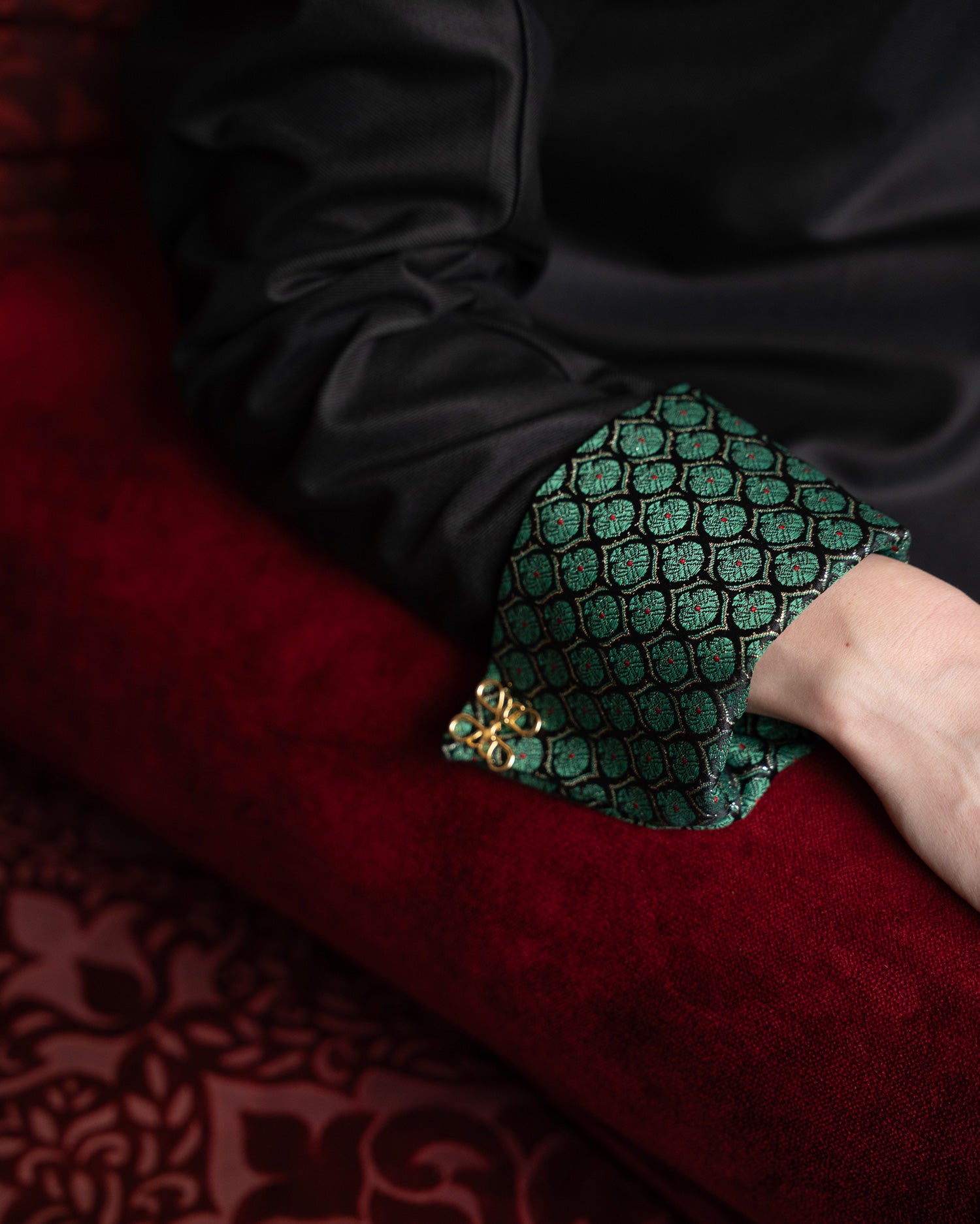• Brocade detailing on collar and sleeves